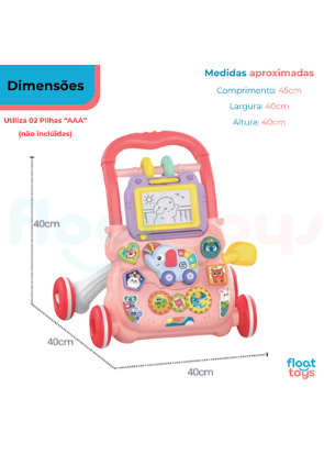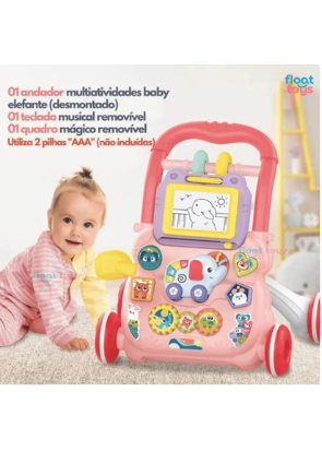 Com design divertido e cores vibrantes, o Andador Multifunções estimula o equilíbrio, a coordenação motora e a curiosidade dos pequenos. Equipado com atividades musicais, botões interativos e elementos educativos, ele transforma cada passo em uma nova descoberta!
