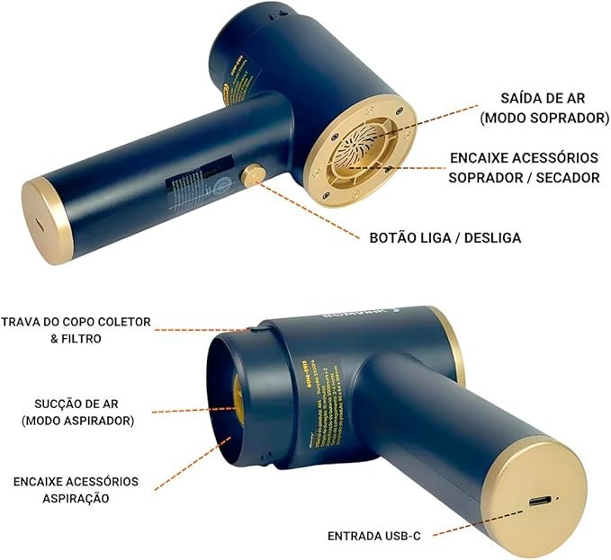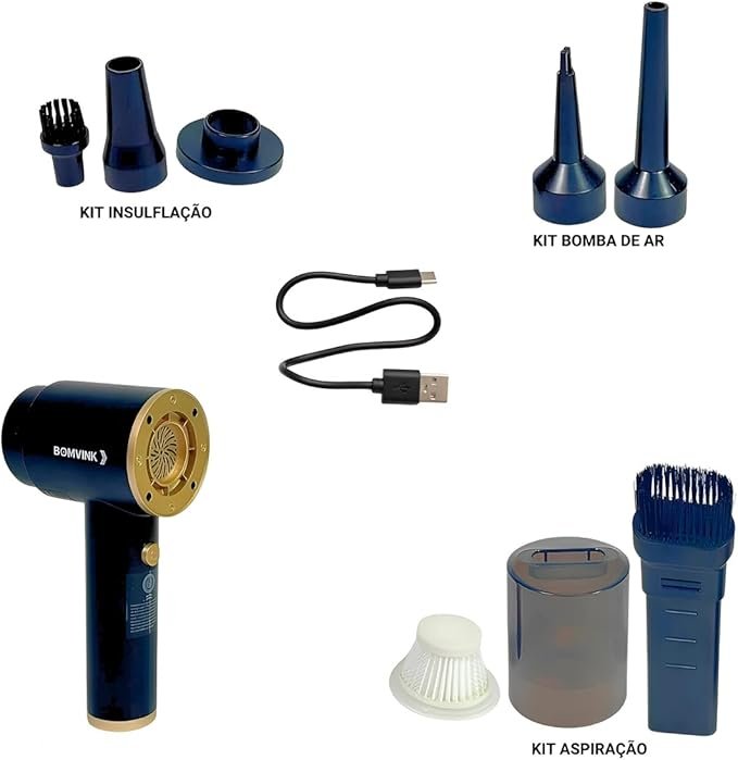 MULTIFUNCIONAL: Aparelho 3 em 1 versátil que combina funções de aspirador portátil, soprador e bomba de ar para diversas necessidades domésticas