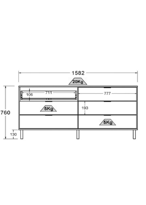 – O tampo é produzido em MDP 15 mm e as laterais e molduras em MDF.