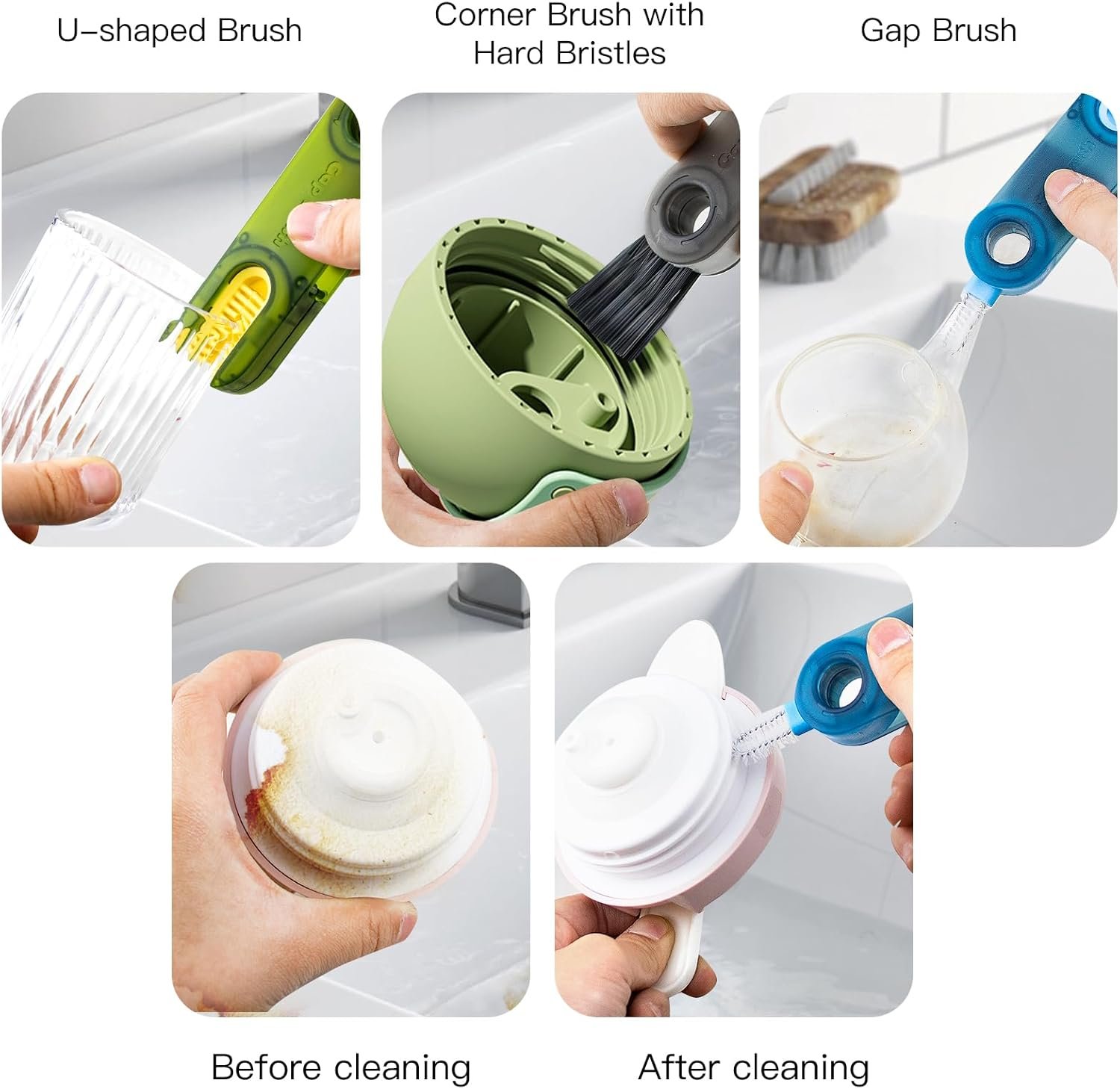 【Ampla aplicação】A escova de limpeza de fenda de tampa 3 em 1 é adequada para muitos tipos de tampas, copos e xícaras, e pode ser usada para limpar xícaras, copos, garrafas de leite, copos esportivos, copos de vinho, xícaras de chá, taças, chaleiras, mamilos, etc. Pode limpar fendas e cantos inacessíveis ou as paredes internas das tampas, trazendo mais conveniência.