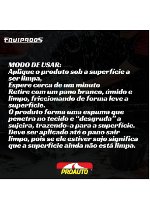 A Espuma Mágica da Proauto é um limpador instantâneo a seco de fácil aplicação: basta aplicar e esperar agir por alguns segundos.