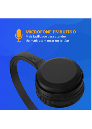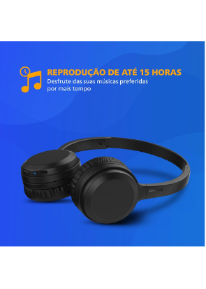 Headphone Philips bluetooth on-ear com microfone e energia para 15 horas na cor preto TAH1108BK/55