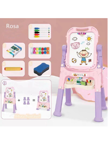 Transforme a brincadeira em aprendizado com este quadro incrível que também vira uma mesa didática! Ideal para crianças de 2 até 4 anos, ela combina diversão e desenvolvimento de habilidades importantes, como criatividade, coordenação motora e expressão emocional. Seja desenhando no quadro com giz ou colorindo desenhos na mesa, os pequenos podem explorar sua imaginação de uma forma educativa e saudável.