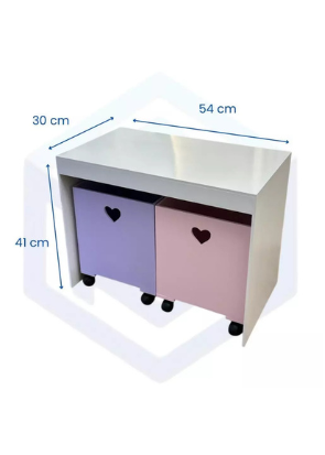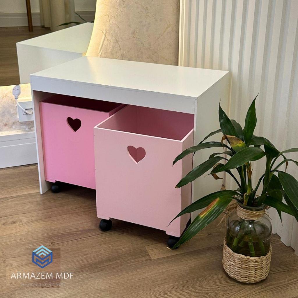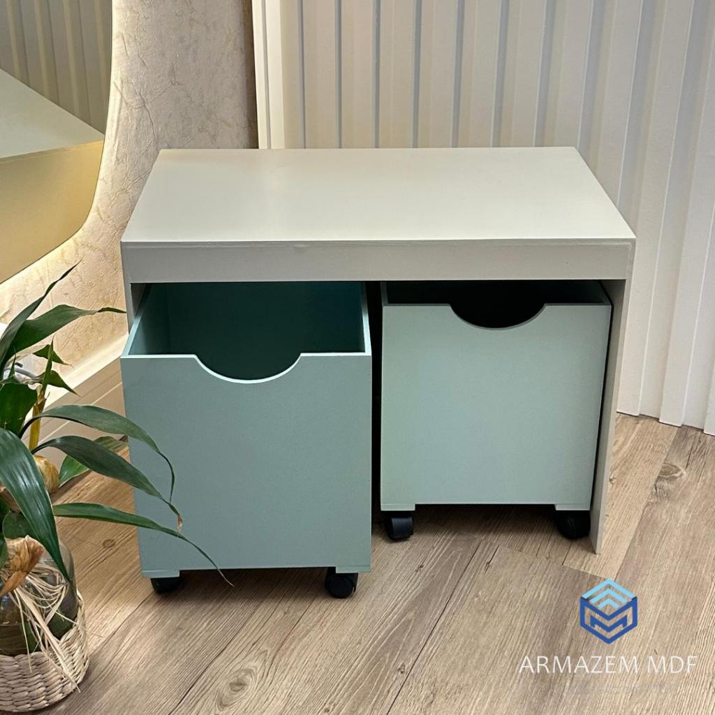 Organizador de Brinquedos Bancada Infantil 2 Gavetas Com Rodinhas em MDF.