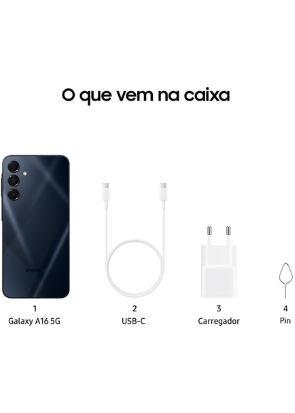 Samsung Celular Galaxy A16 5G, 128GB + 4GB RAM, Câmera de até 50MP, Tela 6.7″, NFC, IP54, Bateria 5000 mAh
