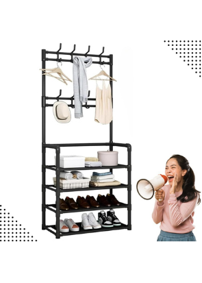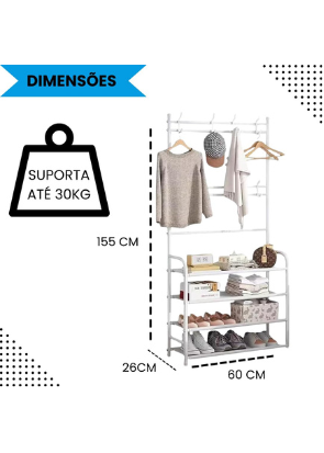 Sapateira Organizador com Cabideiro de Chão e 4 Prateleiras | Arara Multiuso Vertical para Roupas, Bolsas e Sapatos)