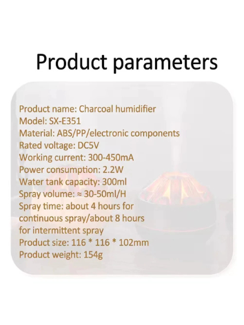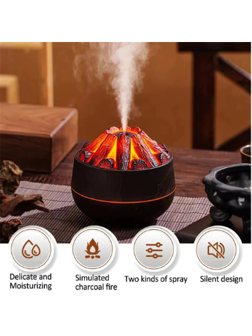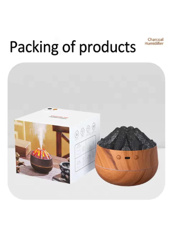 Umidificador de chama de carvão Aromaterapia Difusor de óleo essencial 300ml Umidificador de névoa de chama de carvão Aromaterapia Difusor de óleo essencial 300ml Umidificador ultrassônico de névoa para quarto Escritório Luz noturna
